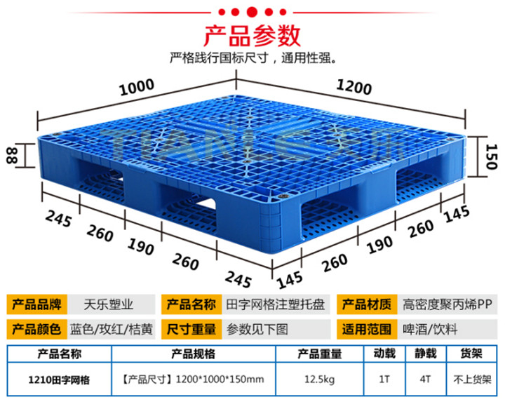 DT-1210田字網(wǎng)格塑料托盤